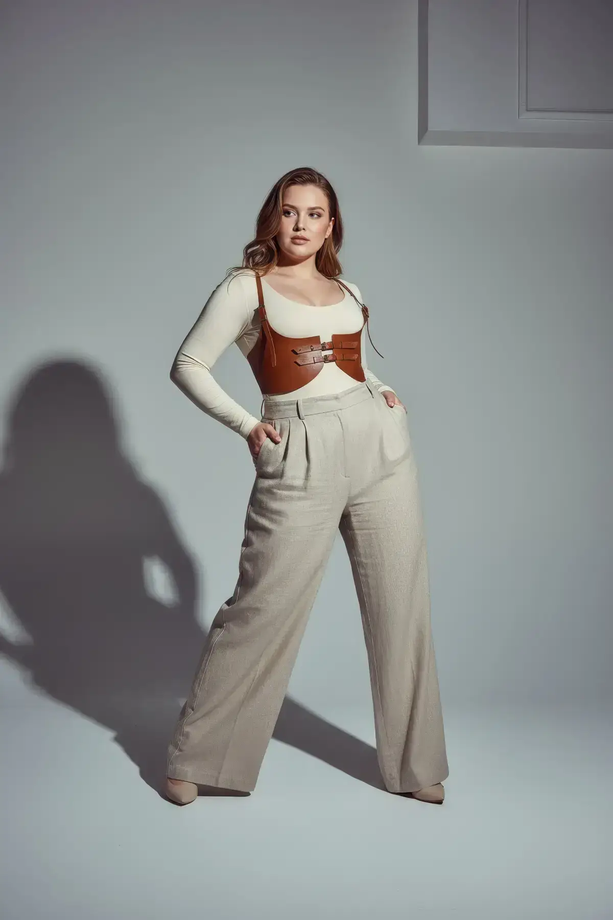 Unleash your inner confidence with this stunning plus size leather corset, featuring a dramatic fusion of traditional structure and contemporary belt straps. This piece is more than just an outfit complement; it is a declaration of style, designed to celebrate and accentuate your curves beautifully. Perfect for club nights, festivals, or adding an edgy dimension to your everyday wear.
