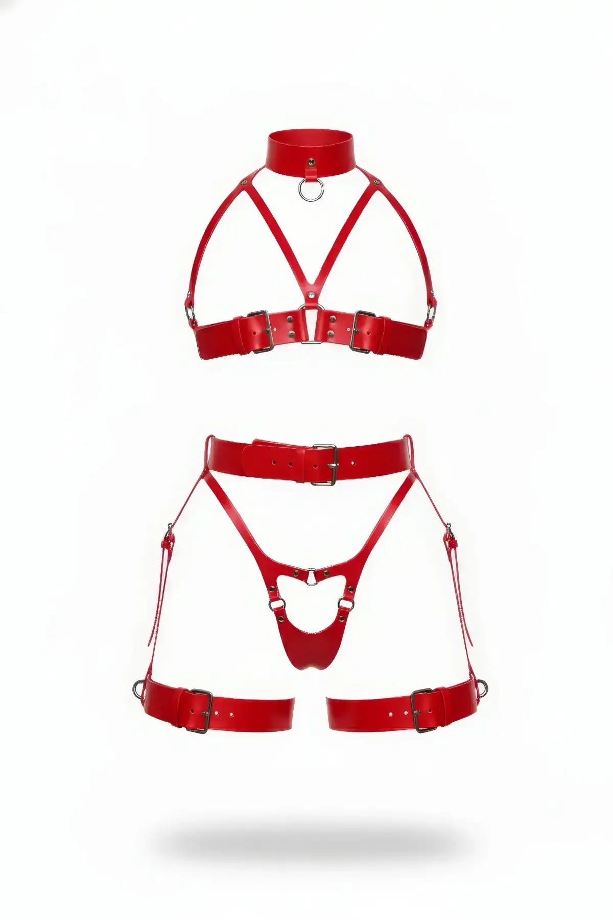 Elevate your collection with this intense Red Harness Set.