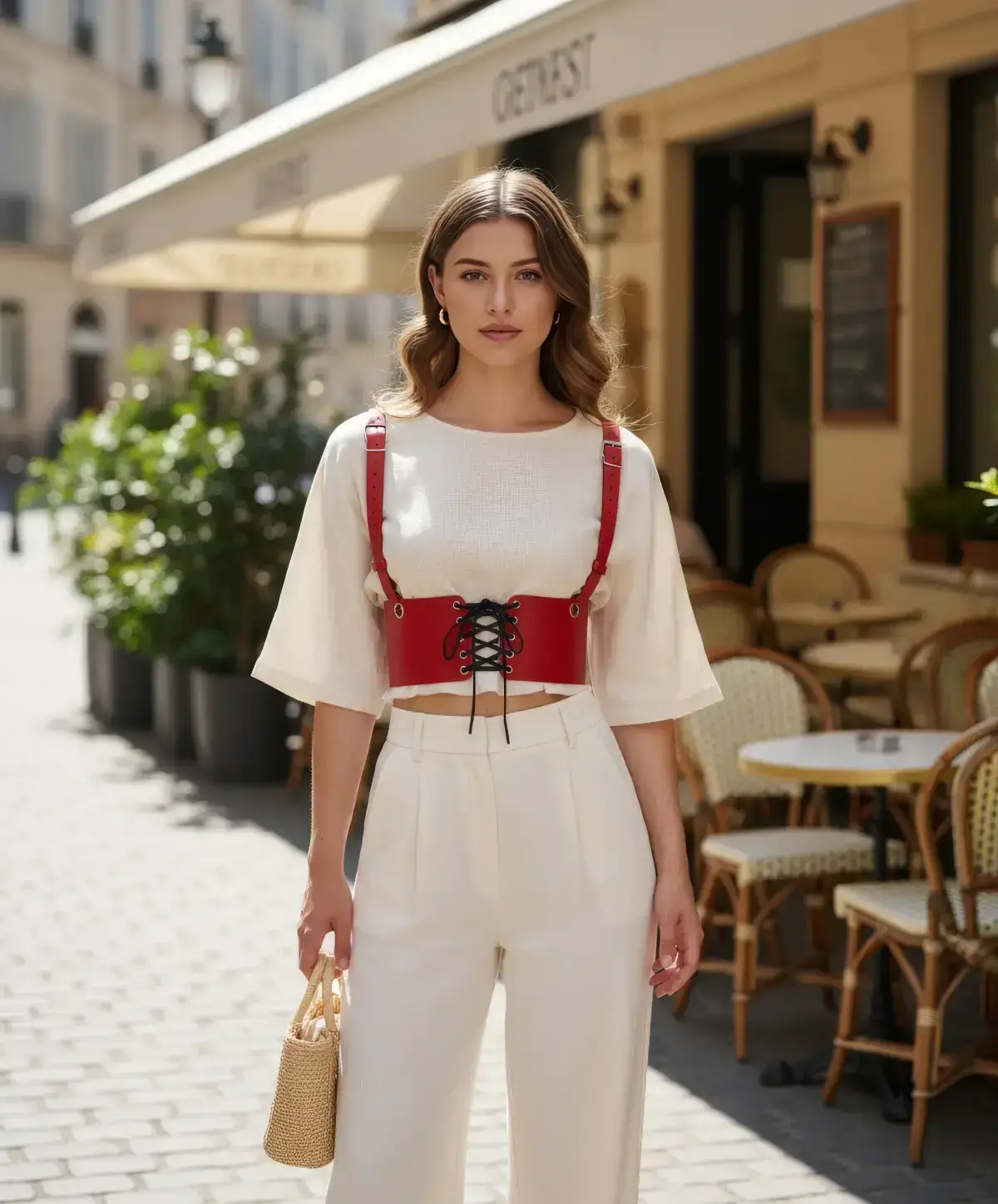 Unleash a captivating aura with our red belted corset waist accessory, the ultimate power piece for your wardrobe. This vibrant, bold statement seamlessly blends the edgy allure of a Women’s Harness with the defining structure of a modern corset, guaranteeing you turn heads at any event. It’s the perfect, affordable way to introduce a splash of intense color and high-fashion drama into your everyday style.