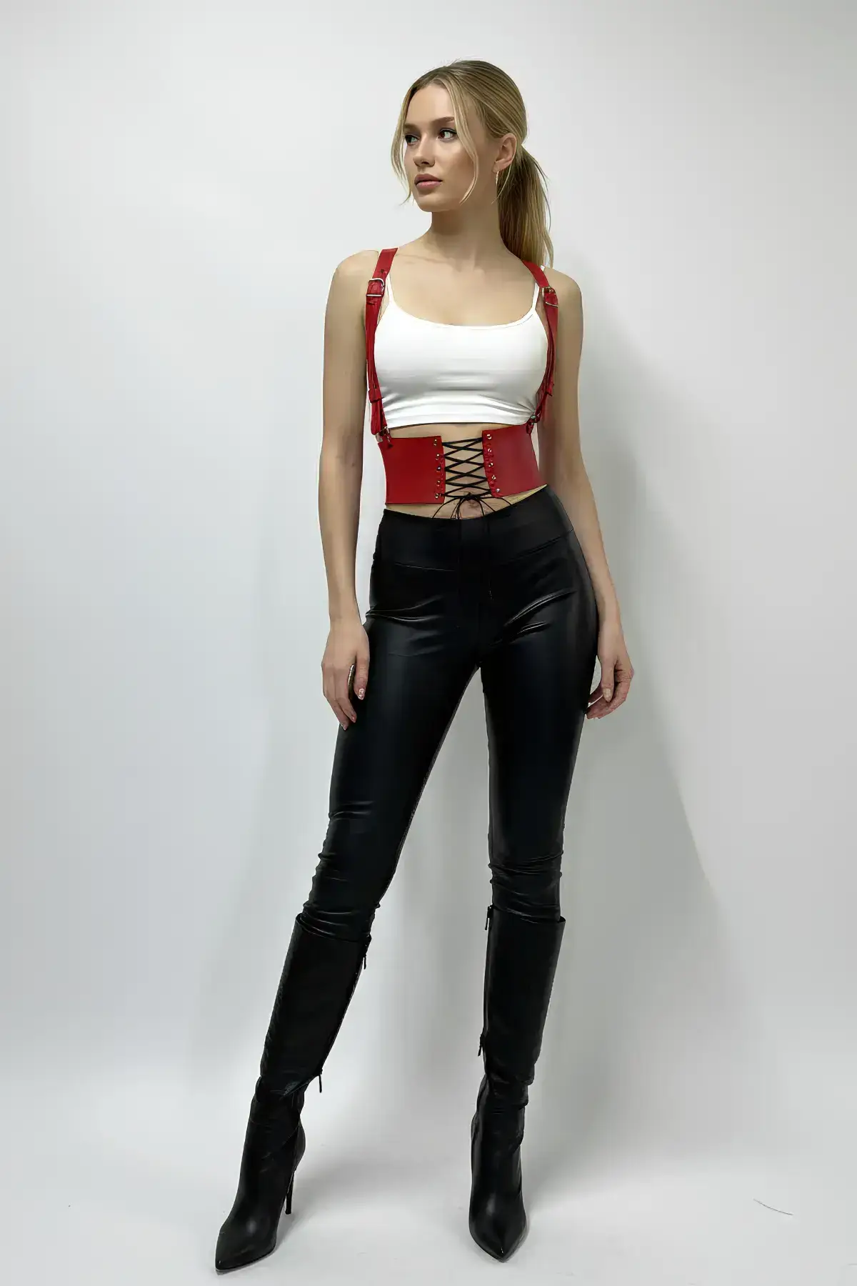 Inject a bold, captivating element into any ensemble with this stunning red wide corset accessory. It transforms basic dresses or oversized shirts into a powerful statement, instantly defining your figure with its dramatic shape.