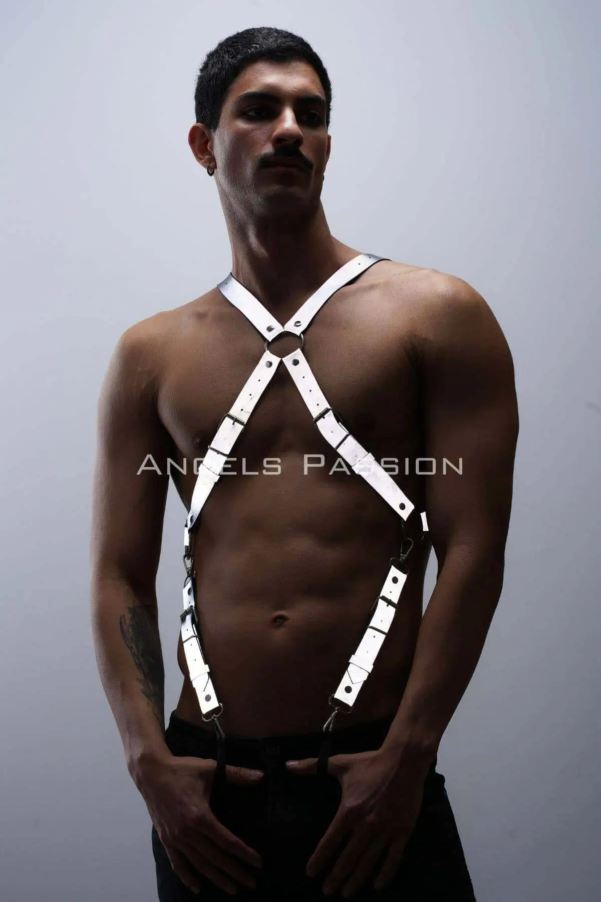 Designed with fully adjustable straps, this chest piece offers a comfortable and secure fit for all body types, serving as an exceptional statement piece among our Men’s Harness selection. The suspender-style straps draw attention to the upper body, creating an edgy, unforgettable silhouette. It is an innovative take on the traditional Chest Harness design, built to add a layer of texture and attitude to any outfit.