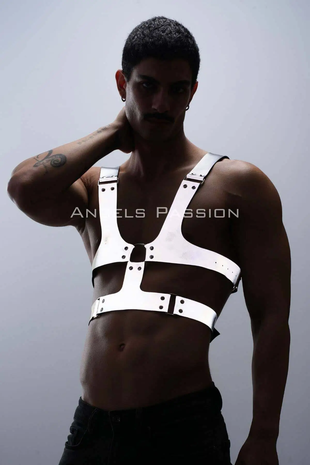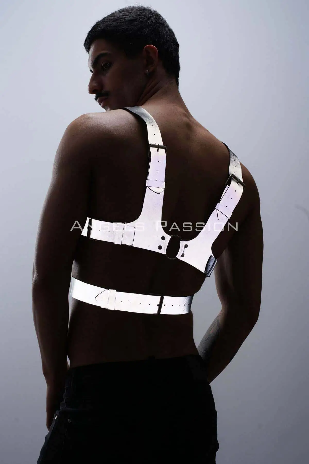 Step out from the shadow and into the light with this extraordinary Reflective & Glow-in-the-Dark Chest Harness. Engineered for those who command attention, this rigid accessory is the definitive statement piece for the modern, confident man. It blurs the line between high fashion and bold fetish wear, ensuring you are an unforgettable, illuminated presence at any event.