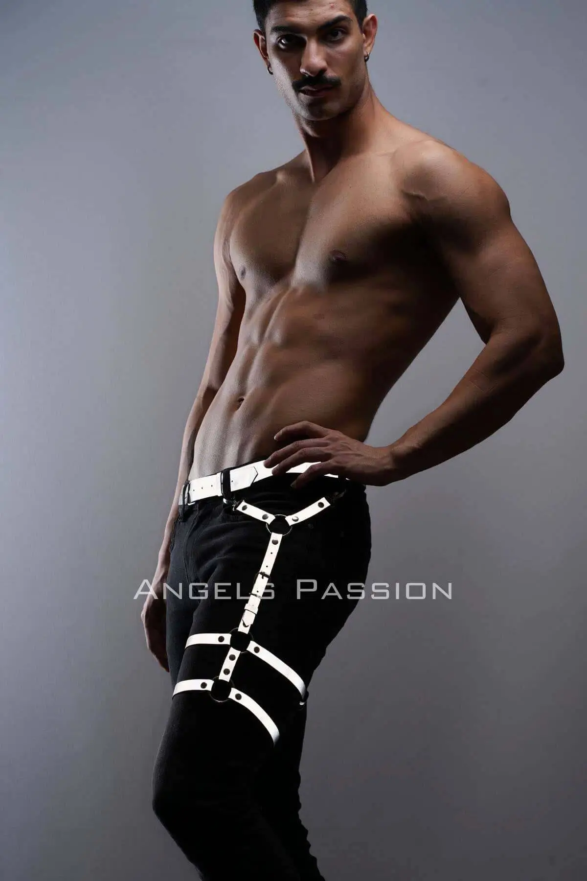 Step into the future of fashion and fetishwear with this ultimate **Men’s Leg Accessory**. This isn’t just a belt; it’s a declaration of dominance, engineered to ensure you are the focal point whether the lights are on or off. Embrace the thrilling contrast of darkness and light, making every movement a deliberate spectacle of self-expression.