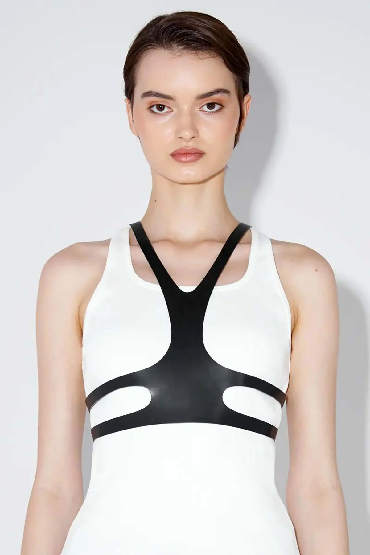Whether you are enhancing a minimalist outfit or completing a daring **bondage gear** look, the thick, adjustable straps on this piece guarantee a secure and comfortable fit, even during extended wear. This versatile **chest harness** moves seamlessly from the bedroom to the club, instantly transforming any outfit into a high-fashion, high-impact look. It’s an essential addition to any curated collection of **Women’s Harness** items, providing unparalleled structure and aesthetic appeal. Pair it with an item from our **Chest Harness** category for a coordinated, powerful ensemble.