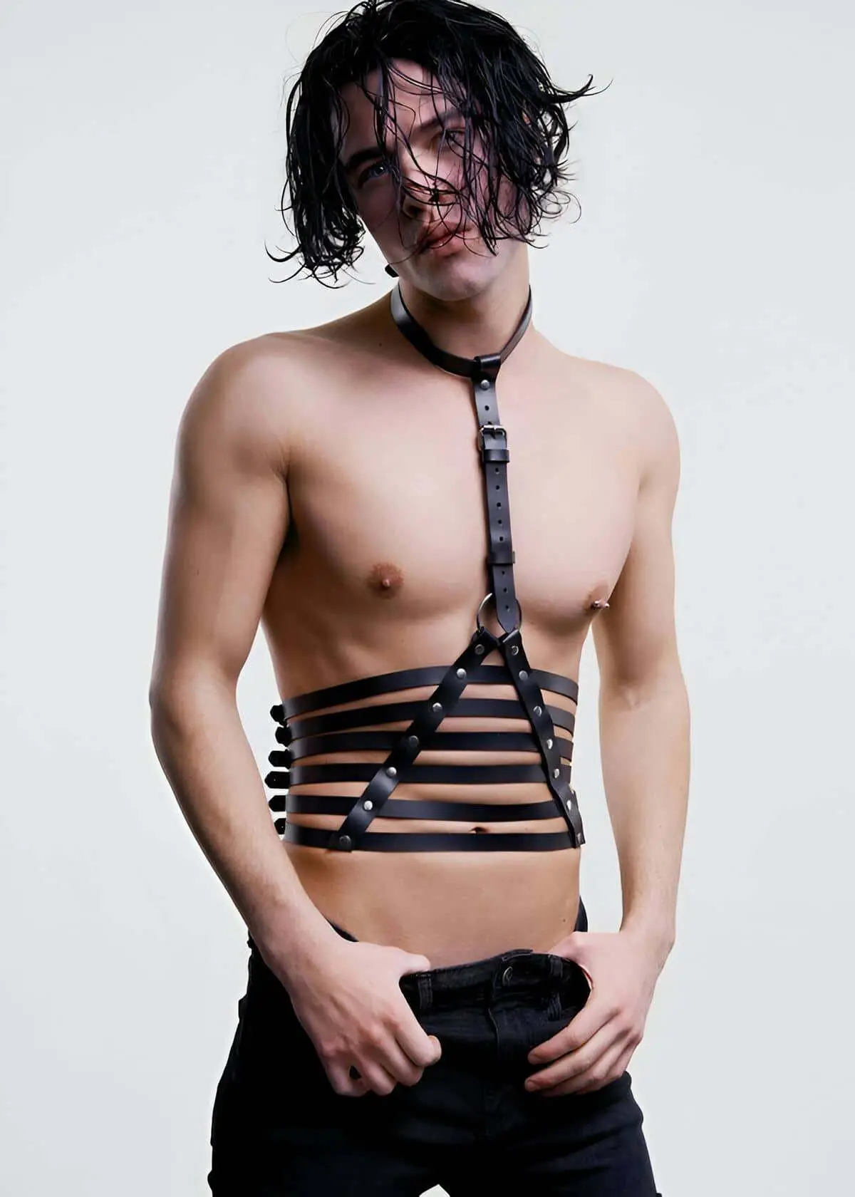 Unleash your most confident and commanding self with this meticulously designed Parallel Detail Triangle Harness. Crafted for the modern sensualist, this piece merges high-fashion geometric lines with the unmistakable authority of premium bodywear. It’s not just an accessory; it’s a declaration of power, transforming any outfit into a masterpiece of masculine allure.