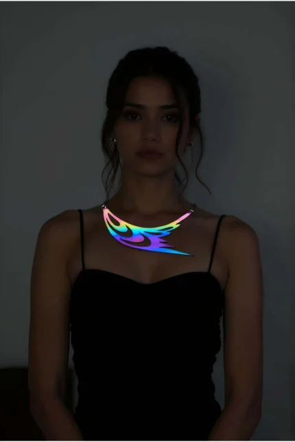 Gökkuşağı Reflektif Kanat ve Göz Detaylı Lazer Kesim Choker Kolye SH1414