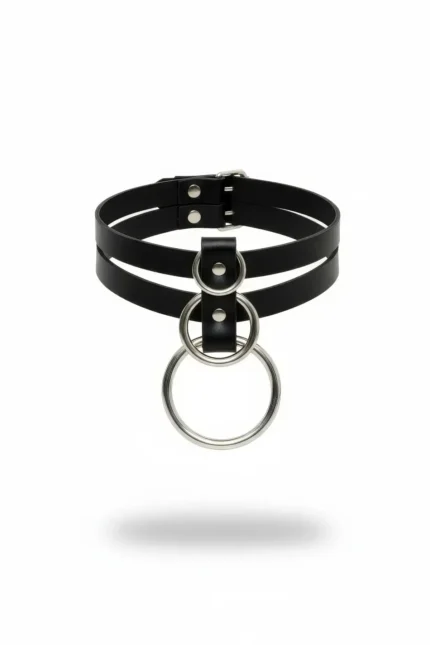 Siyah Suni Deri Çift Bantlı Üçlü Halka Detaylı Choker SH223
