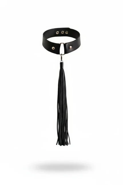 Siyah Deri Püsküllü ve Perçin Detaylı Choker Tasma SH1236