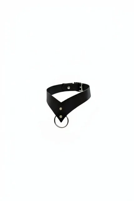 Siyah Deri Metal Halka Detaylı V Kesim Choker SH1370