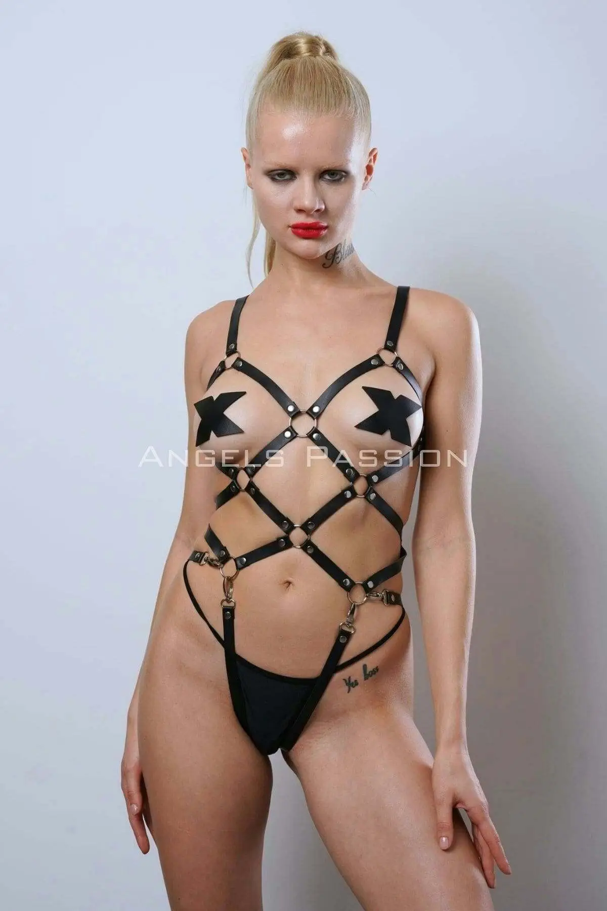 This Full Body Harness is engineered for a flawless fit, regardless of your body shape. It utilizes numerous adjustable straps with durable silver-tone buckles, allowing you to fine-tune the tension and placement across your waist, chest, and thighs. The soft, pliable material ensures comfortable long-term wear, making it perfect as a daring outfit foundation or worn over clothing as a bold accessory. Explore more of our captivating designs in the Women’s Harness collection.