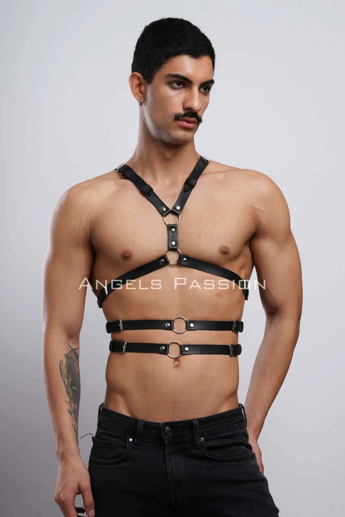 This elegant belt is crafted from high-quality faux leather, ensuring both durability and a luxurious feel. The meticulous design, particularly the intricate detailing on the back, makes it a true centerpiece. Unlike standard accessories, this item from our collection of Men’s Harness is tailored specifically for a comfortable and dynamic fit.