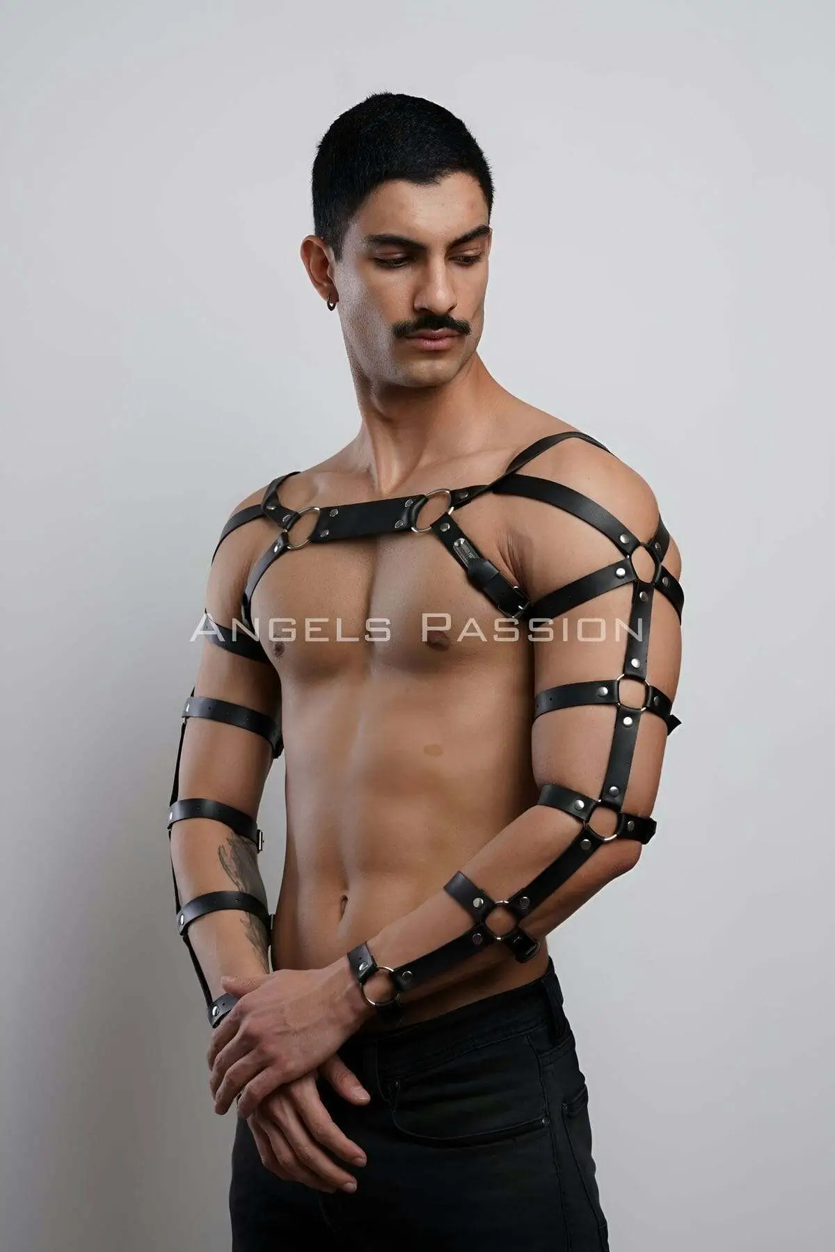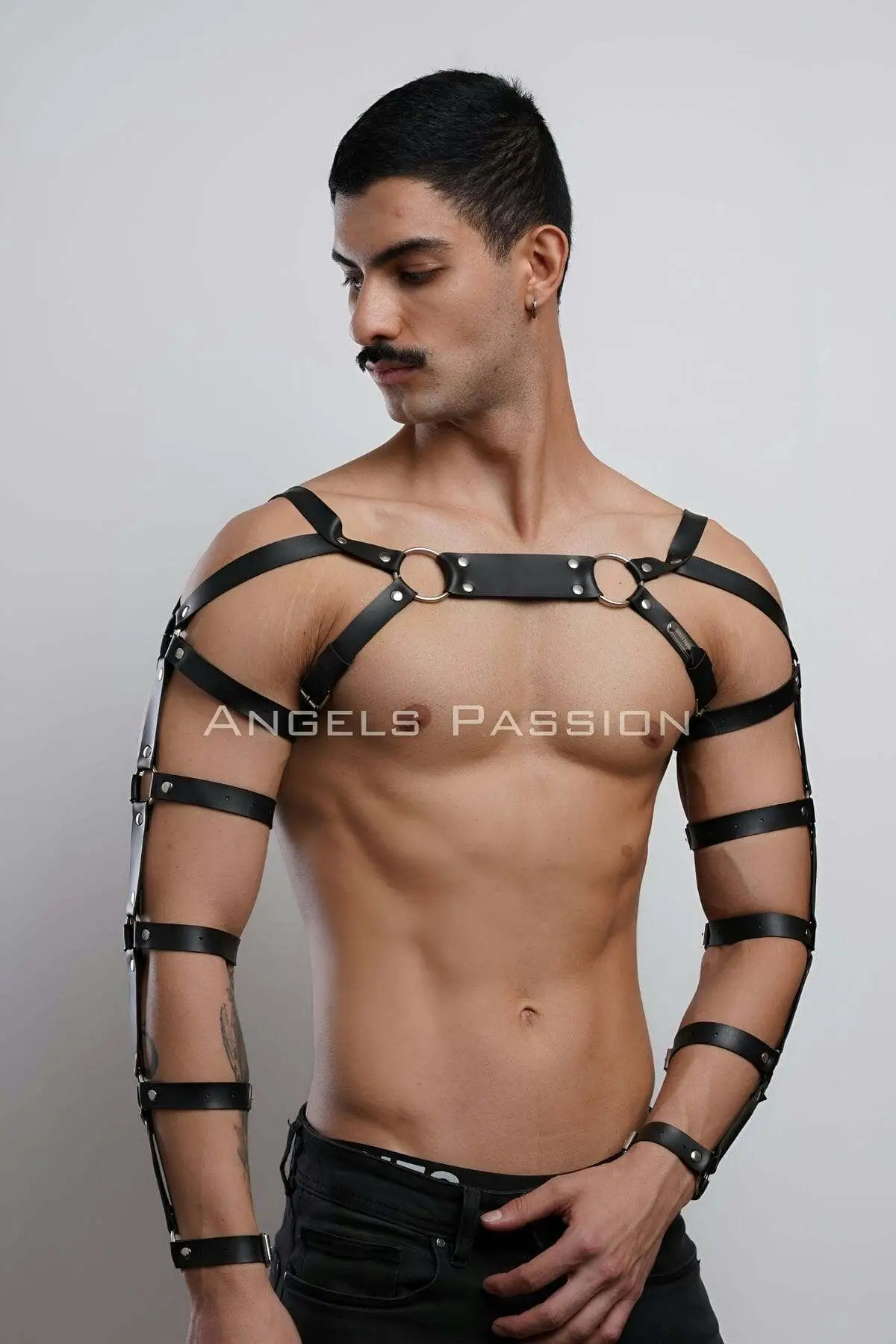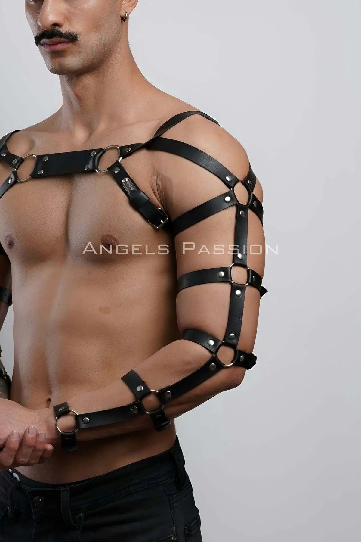 Step into the realm of absolute control with this architectural leather chest and arm harness. Engineered for the modern dominant, this striking piece transforms your silhouette, melding raw masculinity with high-fashion fetish aesthetics. It is the ultimate statement of commanding confidence and power, designed to be worn both as a private accessory and a bold outerwear statement.