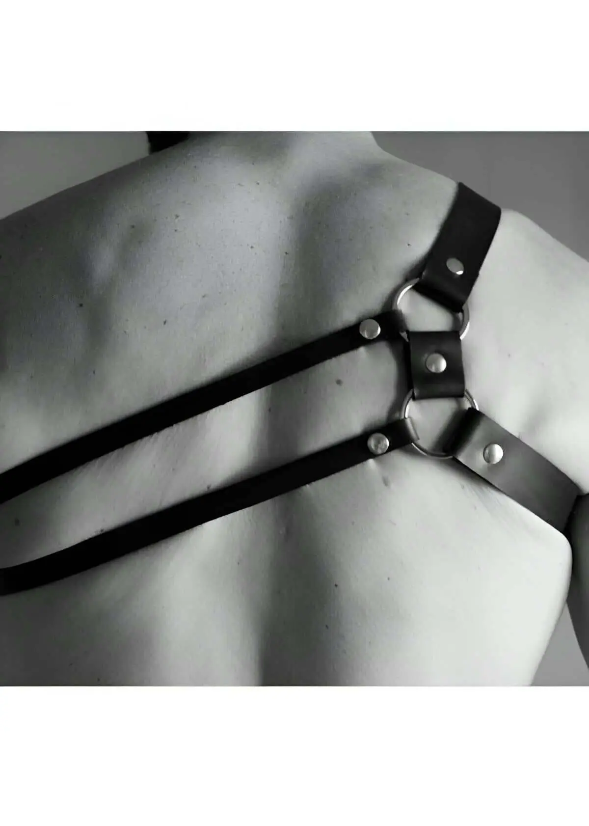 Siyah Deri Metal Halka Detaylı Erkek Göğüs Harness SHM14