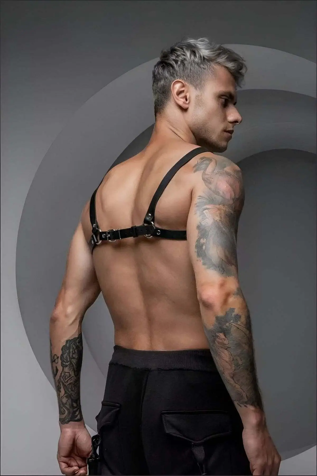 Crafted from high-grade, supple PU leather, this harness is built to endure every environment, from the pulsating energy of a dance floor to the intimacy of a private encounter. The striking, symmetrical design contours perfectly to the masculine form, creating sharp, commanding lines across the chest and shoulders. Every strap is reinforced with heavy-duty stitching and finished with robust, polished hardware, ensuring both lasting durability and a look of undeniable luxury. This piece makes a statement without saying a word.
