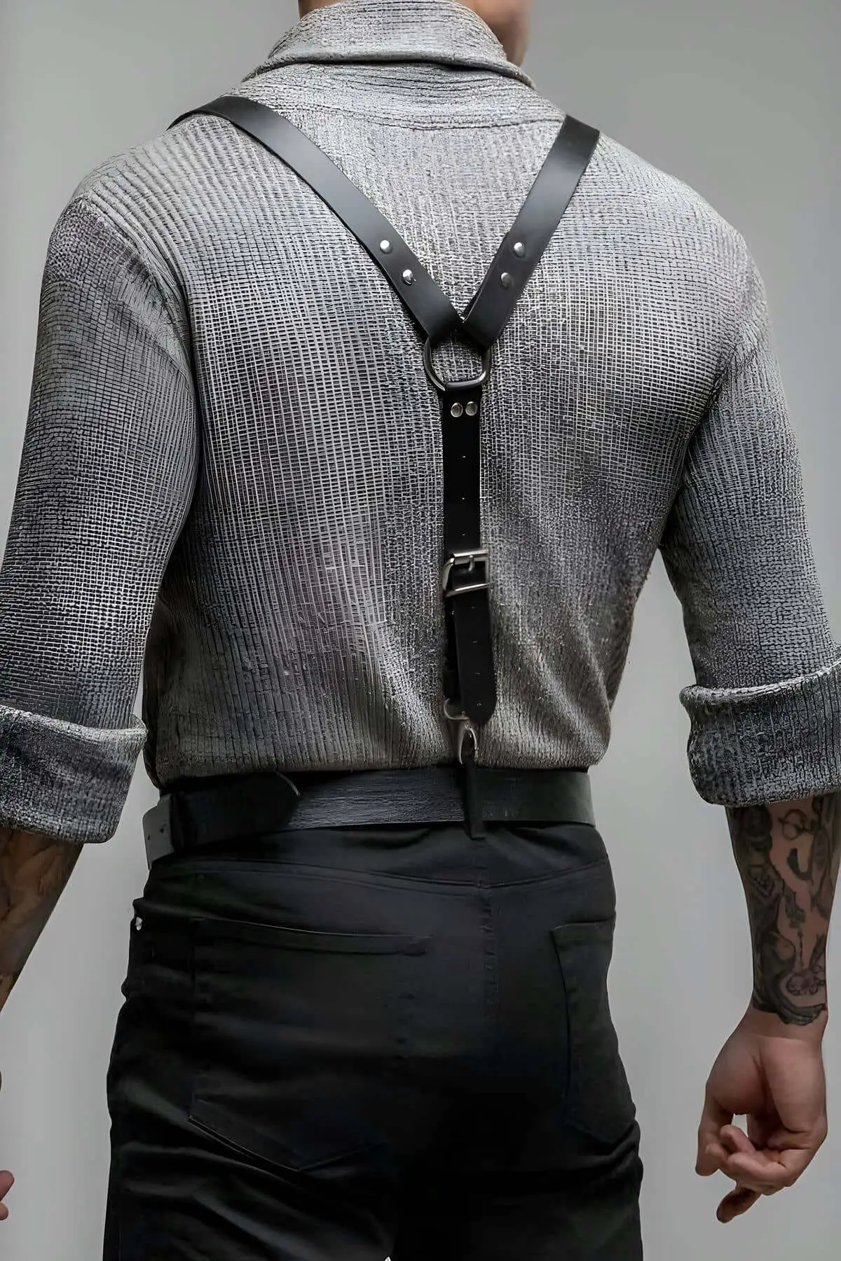 The ultimate statement piece for the man who controls his environment. This isn’t just a belt or a pair of suspenders; it’s a meticulously crafted leather architecture designed to command attention and redefine your silhouette. Step into a world where fashion meets fetish, demanding admiration with every confident movement.