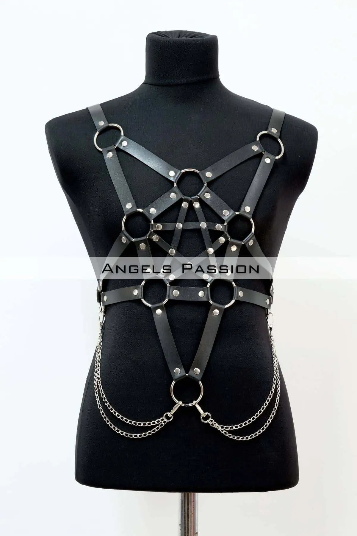 Be the first to review “Siyah Deri Pentagram Detaylı ve Zincirli Erkek Harness SHM223”