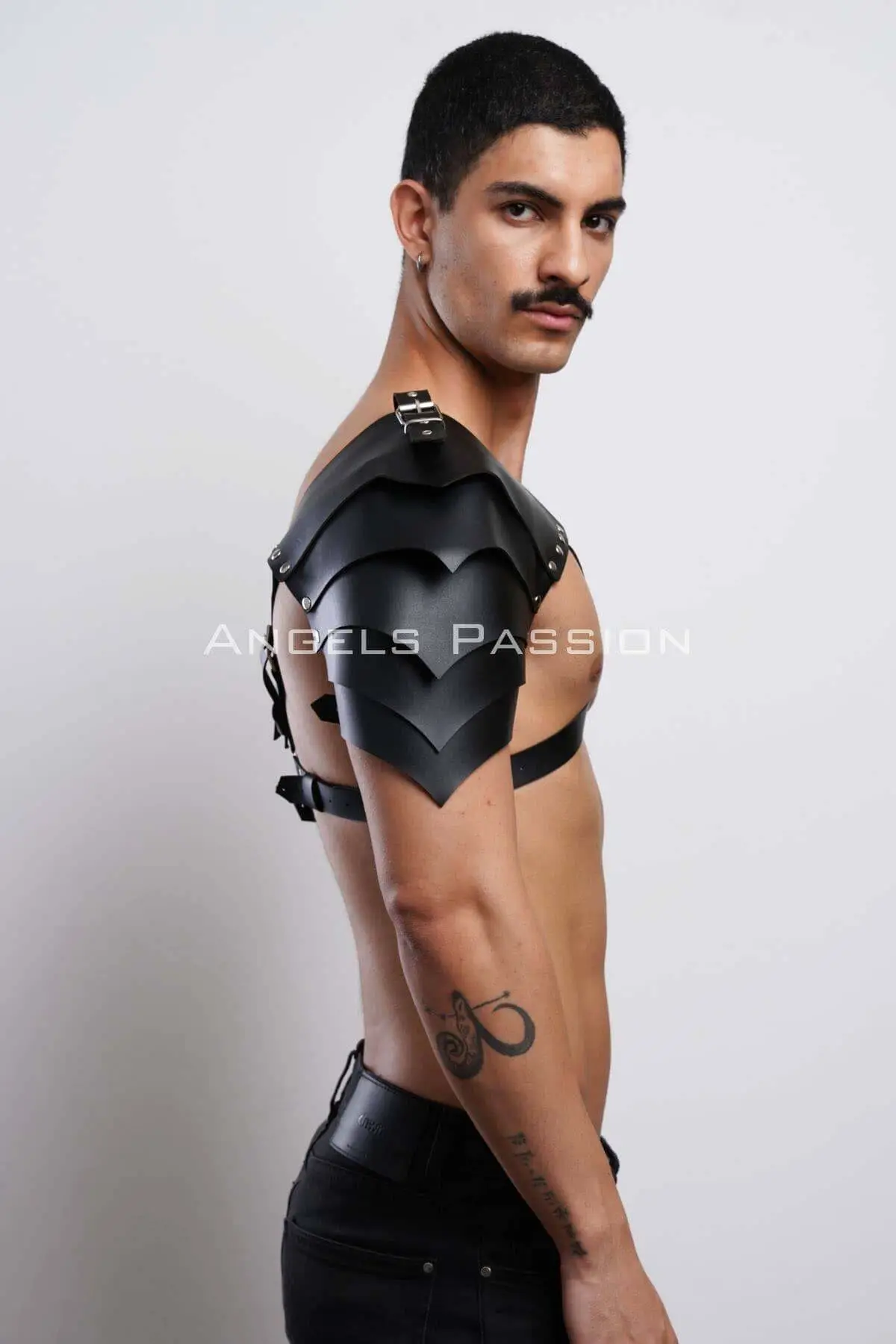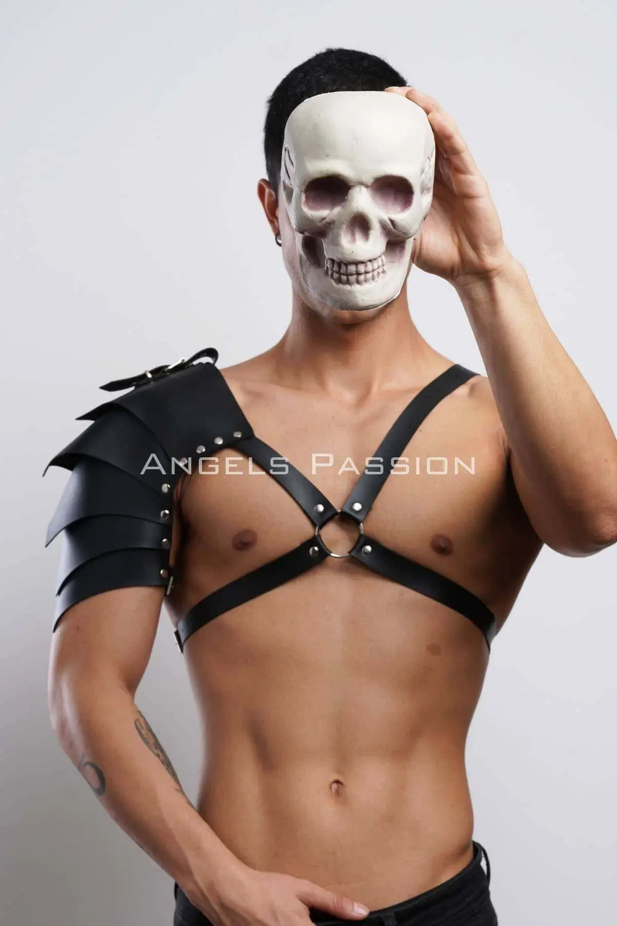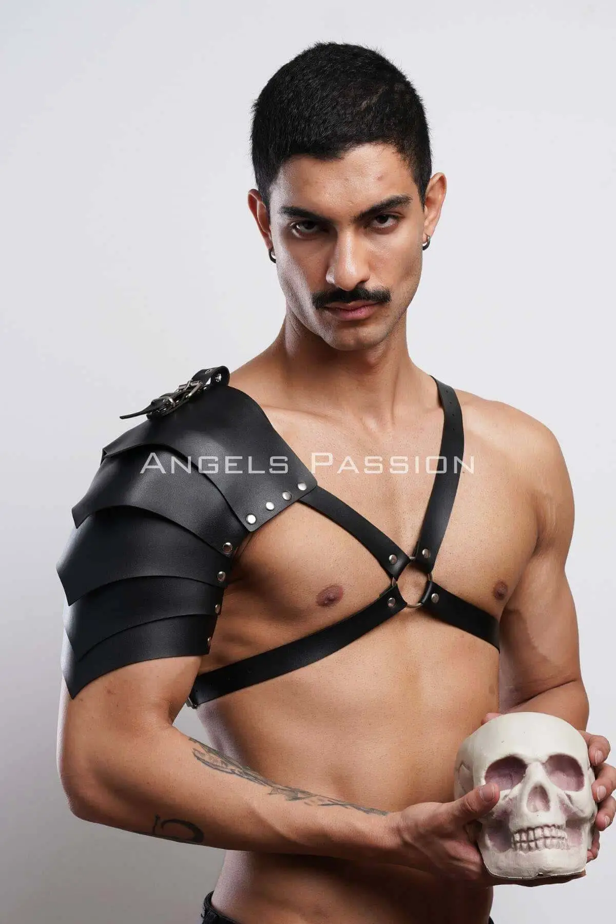 Siyah Deri Tek Omuz Katmanlı Gladyatör Erkek Harness SHM154