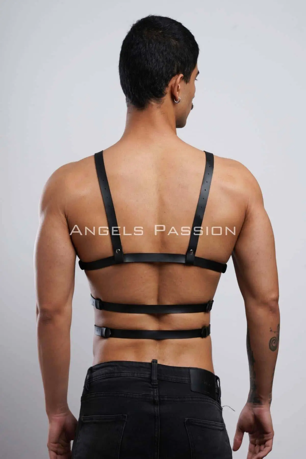 Crafted for durability and style, this harness utilizes high-grade, supple, leather-look material that provides an authentic feel while ensuring long-lasting wear. Every strap is secured with expert stitching and fitted with robust, heavy-duty metal hardware, including secure buckles and O-rings, ensuring both aesthetic dominance and functional reliability. The design accentuates the chest and shoulders, creating a powerful, sculpted look that is essential for true **fetish gear** enthusiasts.