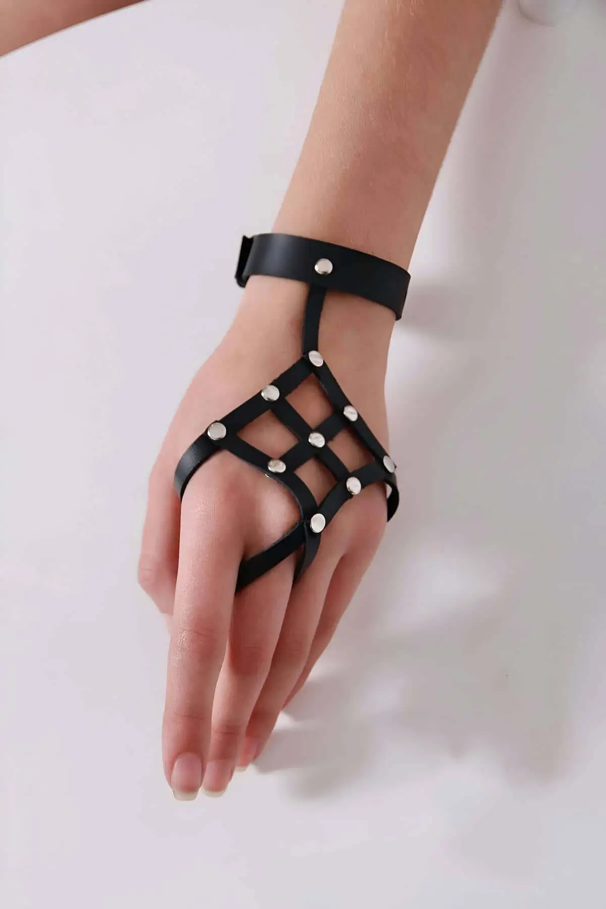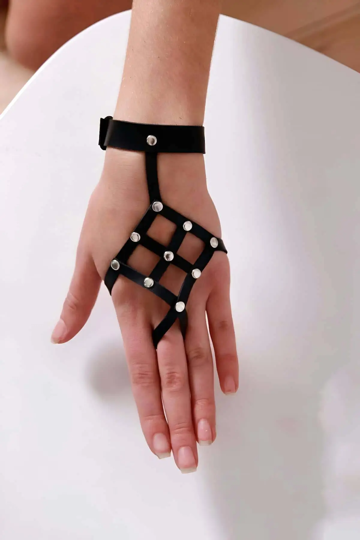 Siyah Deri Zımbalı Şahmeran El Harness Aksesuarı SH1122