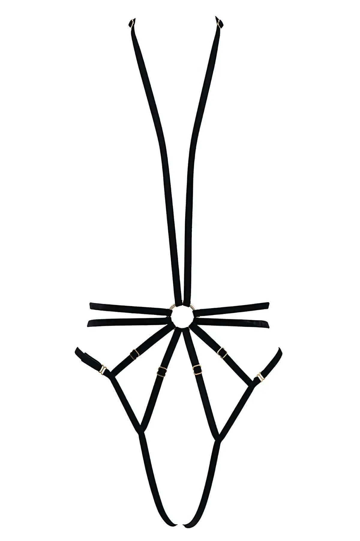 37,9 $Siyah Deri Halka Detaylı Çok Bantlı Body Harness Vücut Koşumu ve Jartiyer SH1214