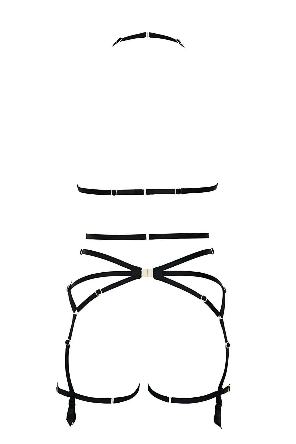 This unique Leg Harness transforms simple outfits into unforgettable statements. Unlike standard Lingerie Accessory pieces, this design offers superior structural integrity while ensuring full comfort. Featuring high-quality, non-tarnish silver-tone metal hardware and ample Adjustable Straps, the garter allows for a personalized, secure, and flattering fit across different body shapes and sizes. Pair it with skirts, shorts, or beneath cut-out dresses for an unexpected flash of fashion. For a complete look, explore our range of matching accessories, like a complementary Chest Harness or a delicate Body Harness.