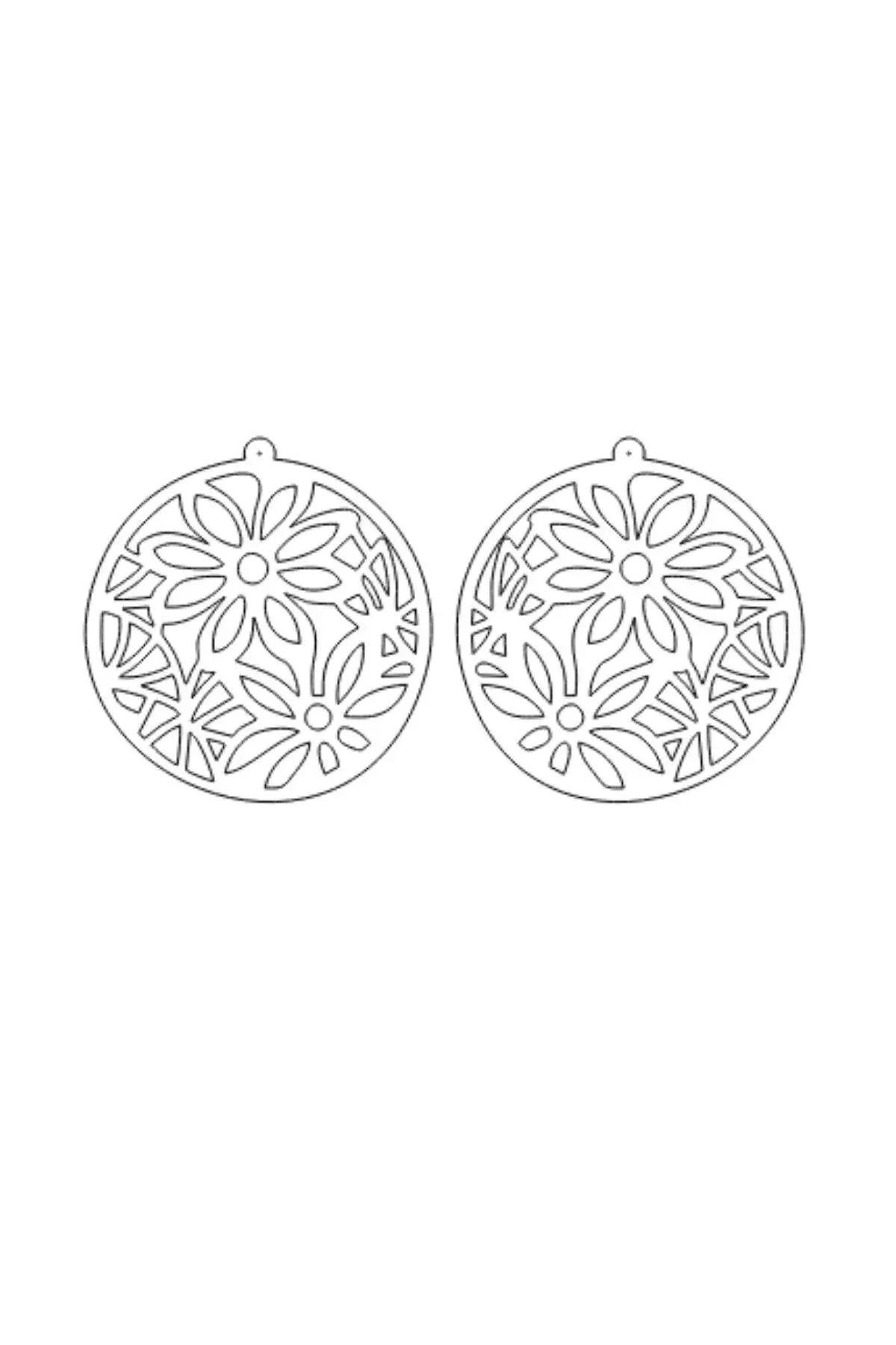 Siyah Lazer Kesim Deri Çiçek Desenli Halka Küpe APBJ023