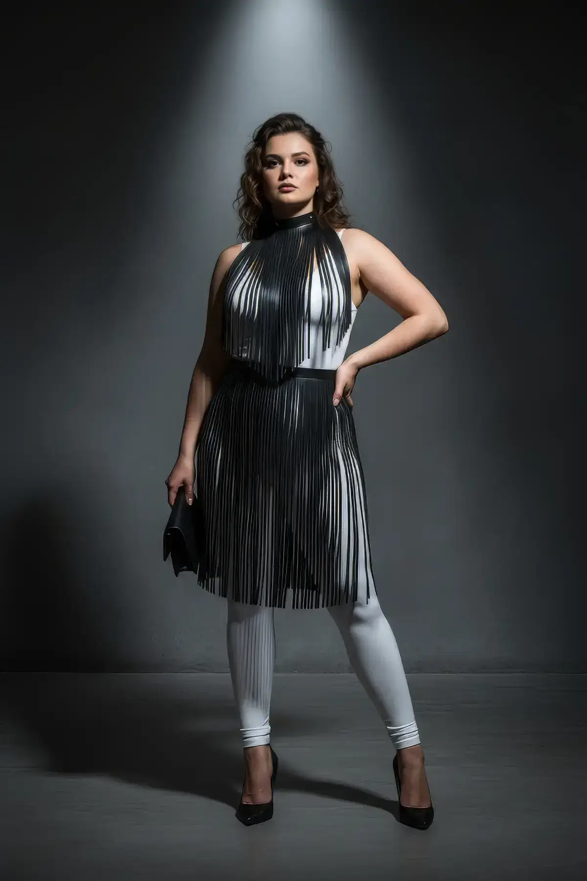 The impactful tassel detail on this Plus Size Black Long Leather Skirt transforms it from basic apparel to a true statement piece. Perfect for nights out, fashion events, or anytime you want your wardrobe to speak volumes, this skirt delivers unmatched visual interest. Its generous cut and quality construction provide a confident, comfortable fit. For an even bolder presentation, accessorize the outfit with a structured Chest Harness to create a stunning, cohesive look that is guaranteed to turn heads and showcase your personal style authority.
