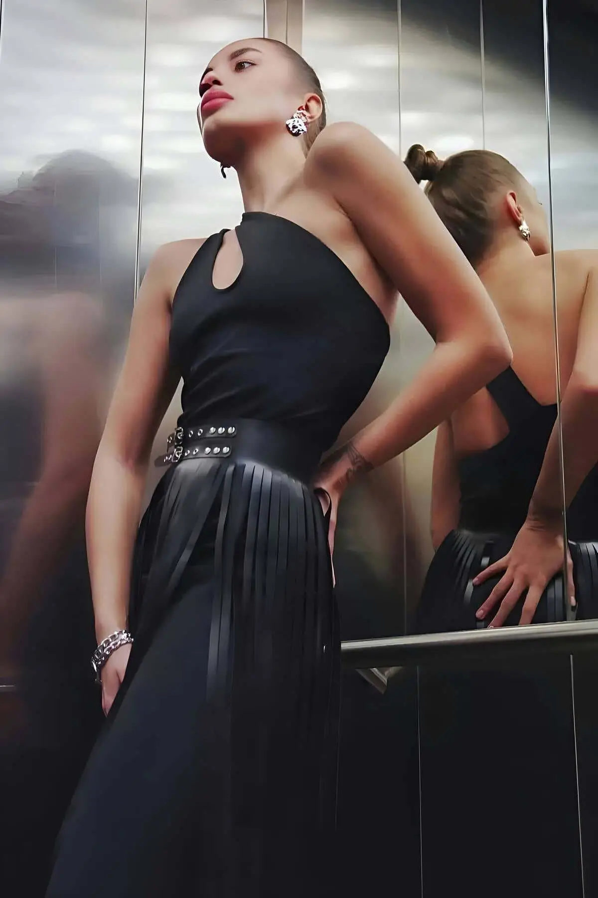 The Tasseled Leather Skirt is designed for those seeking a vibrant fringe skirt aesthetic without sacrificing modern style. Its unique construction layers a shorter base skirt with exceptionally long fringe, providing both coverage and a dramatic silhouette. This piece embodies high fashion and versatility, easily pairing with a simple top or an intricate Body Harness for a complete night-out ensemble. It’s a guaranteed head-turner, moving with you effortlessly through any event.