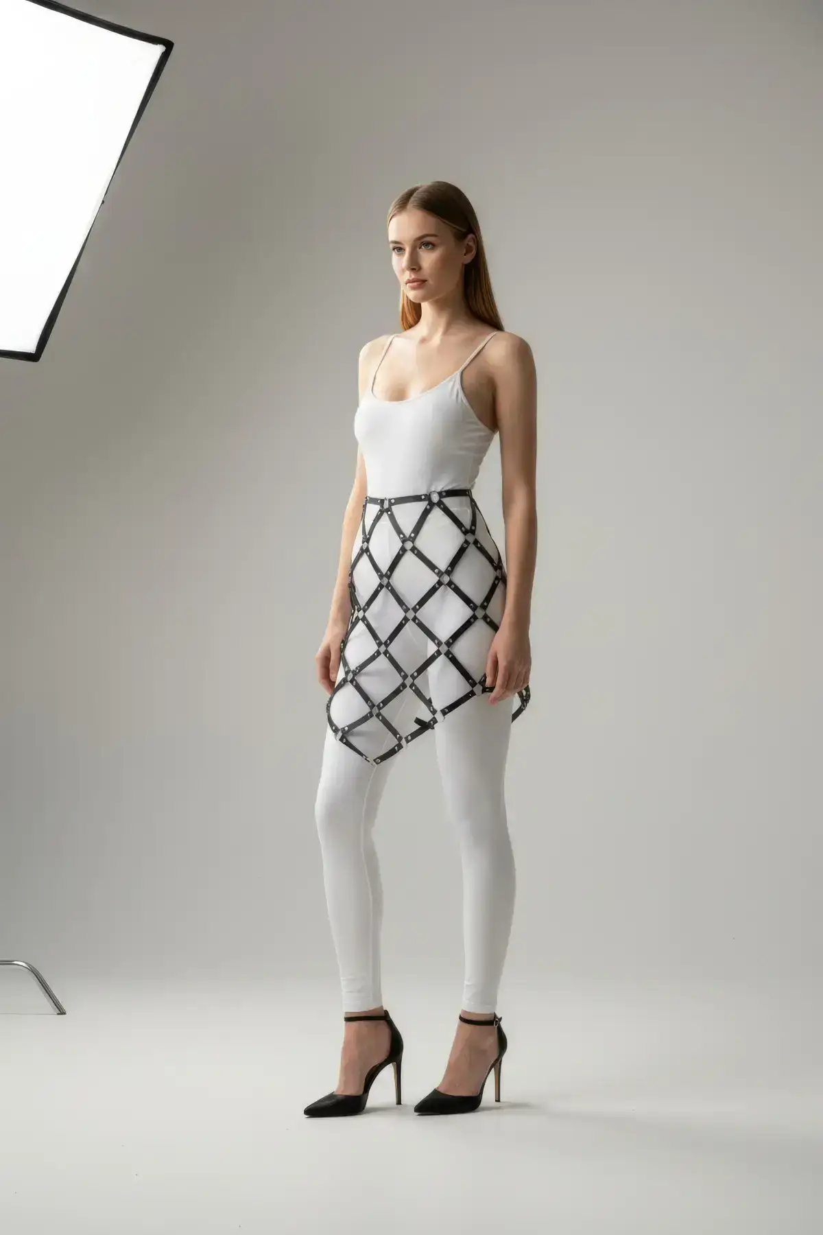 Expertly constructed, this Metal Detail Skirt is built for both durability and unparalleled style. The faux leather material offers a luxurious feel and a perfect fit, making it a comfortable yet powerful option for clubs, concerts, or any bold outing. Unlike a simple Leather Skirt, the integrated strap work acts as its own accessory, eliminating the need for bulky extras. Pair it with a simple black top and thigh-high boots to let the garment’s complexity truly shine. This versatile piece embodies the spirit of both a sophisticated mini and a daring Women’s Belt hybrid.