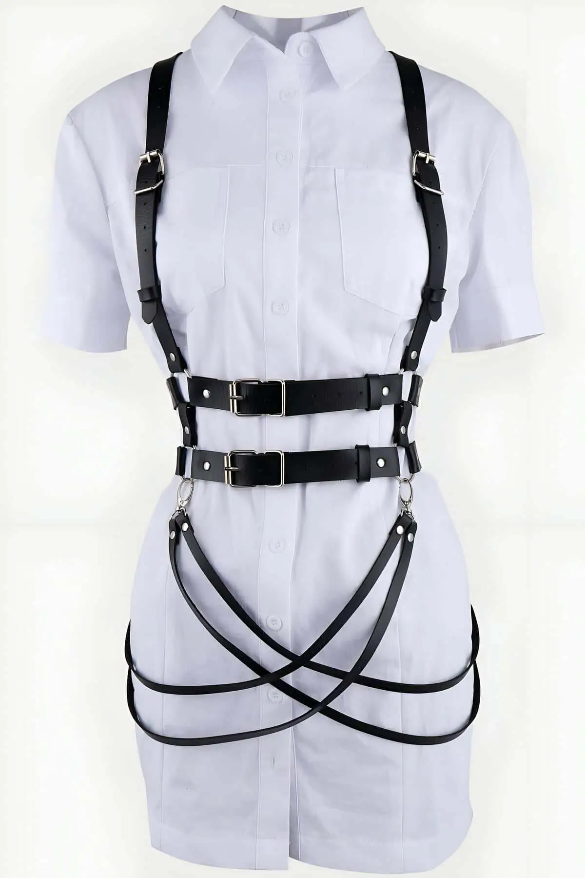 Leather Belt with Tassel Detail on Shoulders, Strappy Leather Harness – SH1004