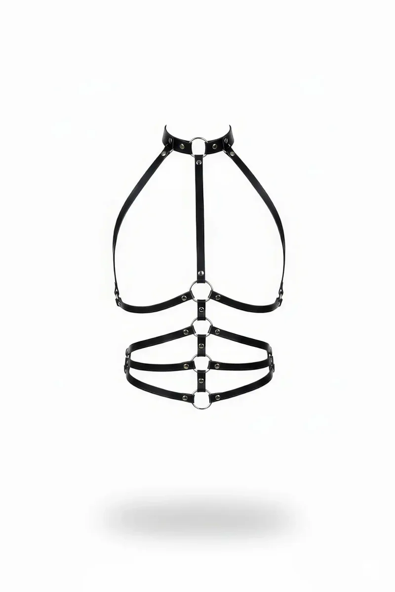 Siyah Kadın Kemer Halka Detaylı Suni Deri Vücut Aksesuarı - APFT749