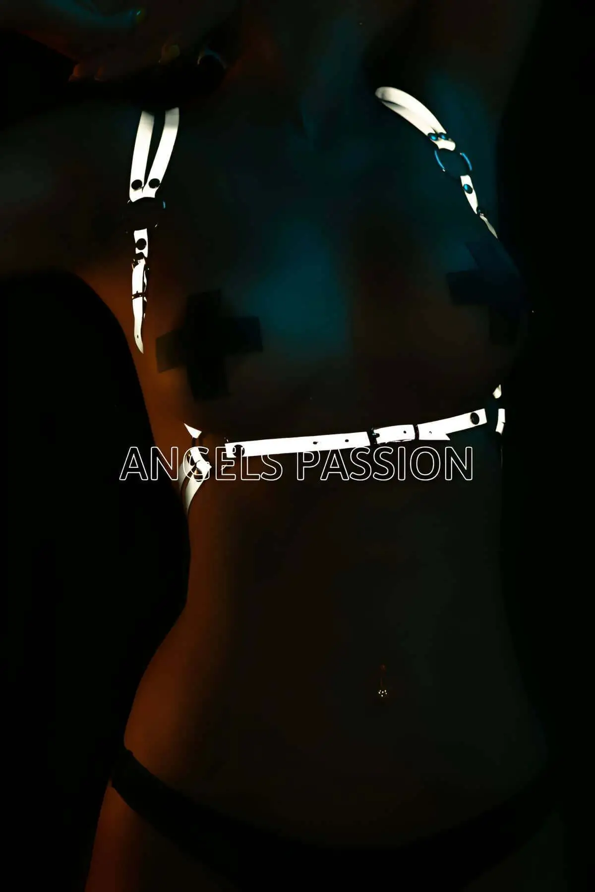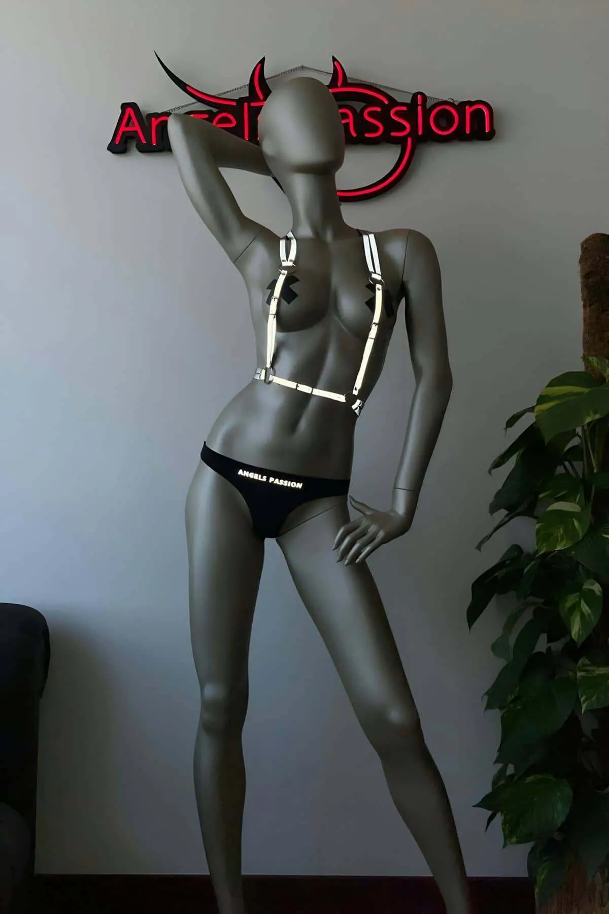Why choose between safety and style when you can have both? This White Reflective Thin Vest Harness functions brilliantly as **safety gear** while maintaining an ultra-chic appearance. The high-visibility effect ensures you stand out in low-light environments, making it perfect for night-time events and dynamic **festival fashion** outfits. The thin webbing material is durable yet soft against the skin, engineered for all-night comfort. Explore more stunning options in our Women’s Harness collection to complete your wardrobe.