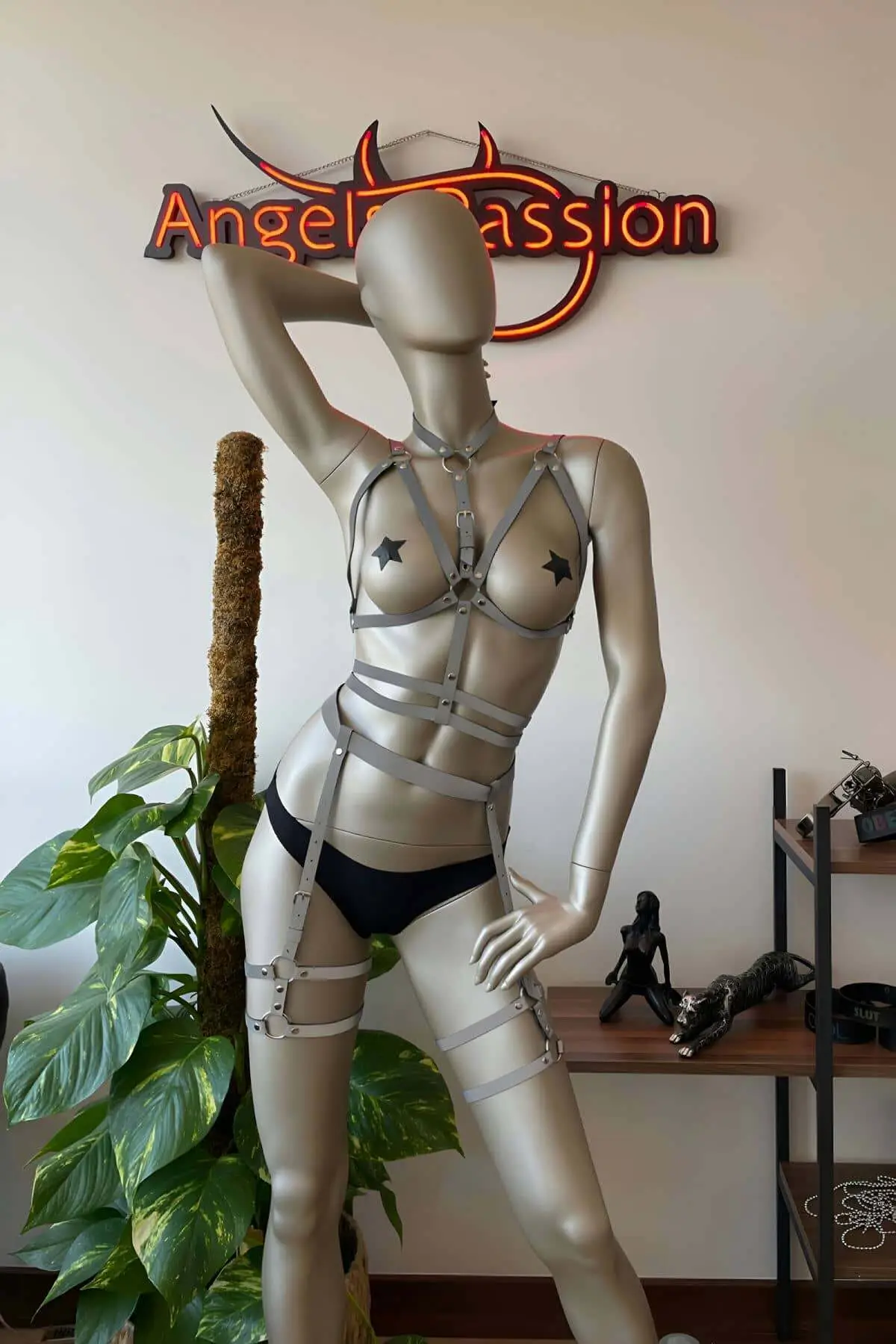 The sh455 Reflective Harness is more than just clothing; it is a transformative accessory. The intricate arrangement of the straps creates a striking skeletal or futuristic look, elevating simple outfits or intimate wear. Pair this piece with a high-waisted skirt for a streetwear vibe or wear it over a simple bra set to define your silhouette in a bedroom fantasy. The complexity of the design, especially the prominent chest and shoulder sections, makes it an excellent alternative to a traditional Chest Harness, offering a captivating full-torso adornment.