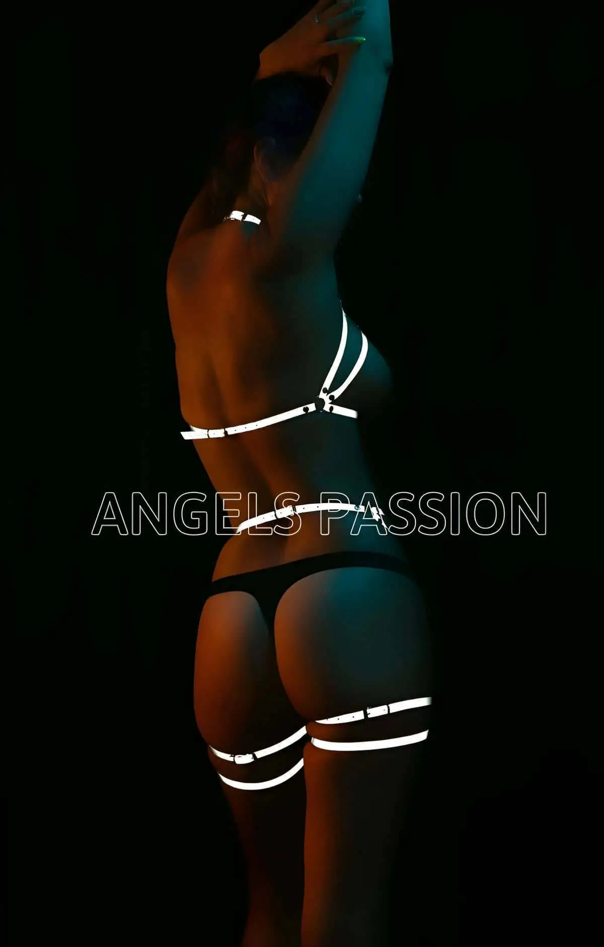 Ignite the night with the sensational Women’s Underwear Glow-in-the-Dark Harness. This captivating two-piece set, visible in the image with its bright, luminous straps, is designed to leave a lasting impression. The top features an intricate criss-cross structure that defines the chest, meeting a striking center ring, while the high-cut bottom creates bold lines across the waist and hips. Unlike standard lingerie, this piece is crafted from a unique, flexible material that absorbs light during the day to deliver a powerful neon green glow when the lights go down, making it the ultimate piece of Glow-in-the-Dark Harness for performance or play.
