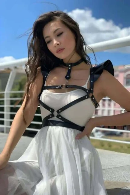 Siyah Deri Omuz ve Boyun Detaylı Göğüs Harnesi SH996