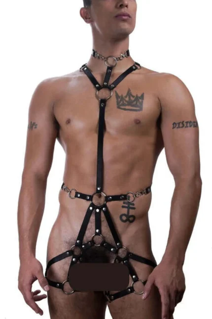 39,9 $Erkek Siyah Halka Detaylı Harness ve Bacak Kemeri SHM189